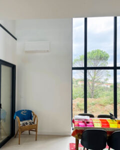 Dans cette maison moderne de 260 m², nous avons installé 10 unités murales Daikin – gamme Stylish, accompagnées de 3 unités extérieures pour une performance optimale pour du chauffage principal et de la climatisation.